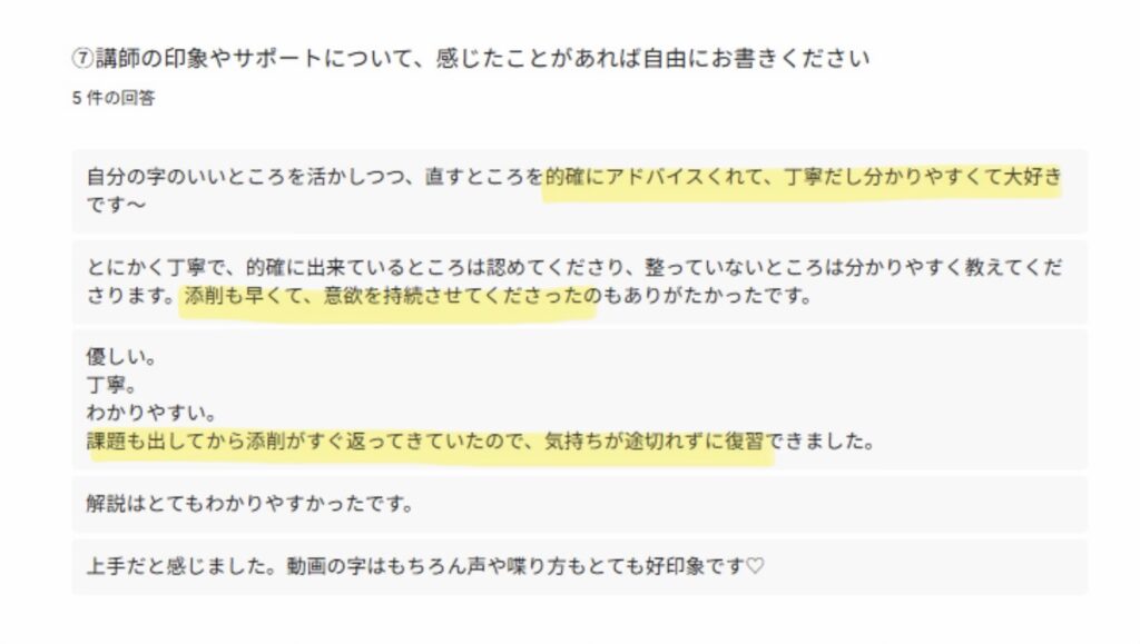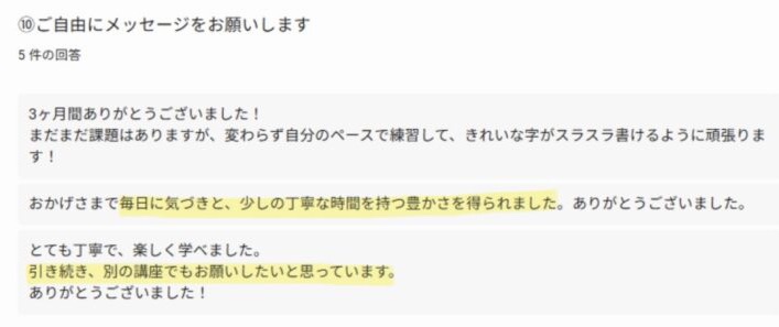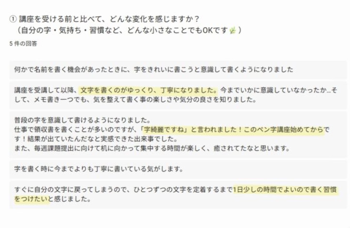 ペン字3ヶ月コースを受講された皆さまに、アンケートにご協力いただきました。
