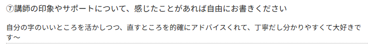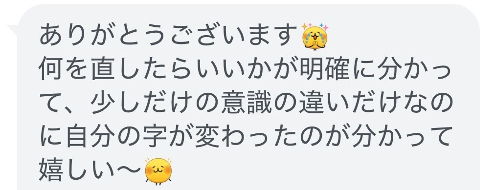 「自分の字のいいところを活かしつつ、直すところを的確にアドバイスくれて、丁寧だし分かりやすくて大好きです〜」