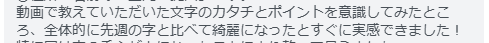 「動画で教えていただいた文字のカタチとポイントを意識してみたところ、全体的に先週の字と比べて綺麗になったとすぐに実感できました!」