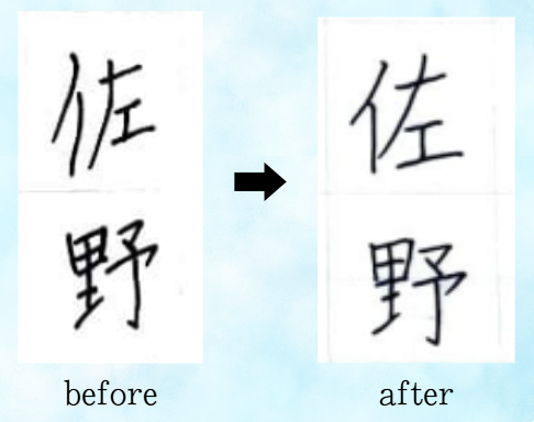 動画でお伝えしたポイントを意識しながら練習を続けてくださり、文字のバランスが少しずつ整ってきましたね。