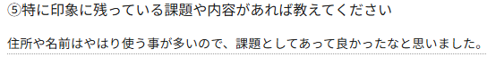 「住所や名前はやはり使う事が多いので、課題としてあって良かったなと思いました」