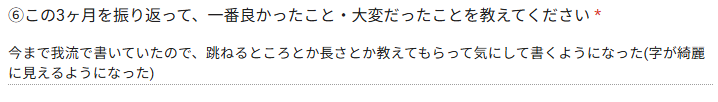 「今まで我流で書いていたので、跳ねるところとか長さとか教えてもらって気にして書くようになった(字が綺麗に見えるようになった)」